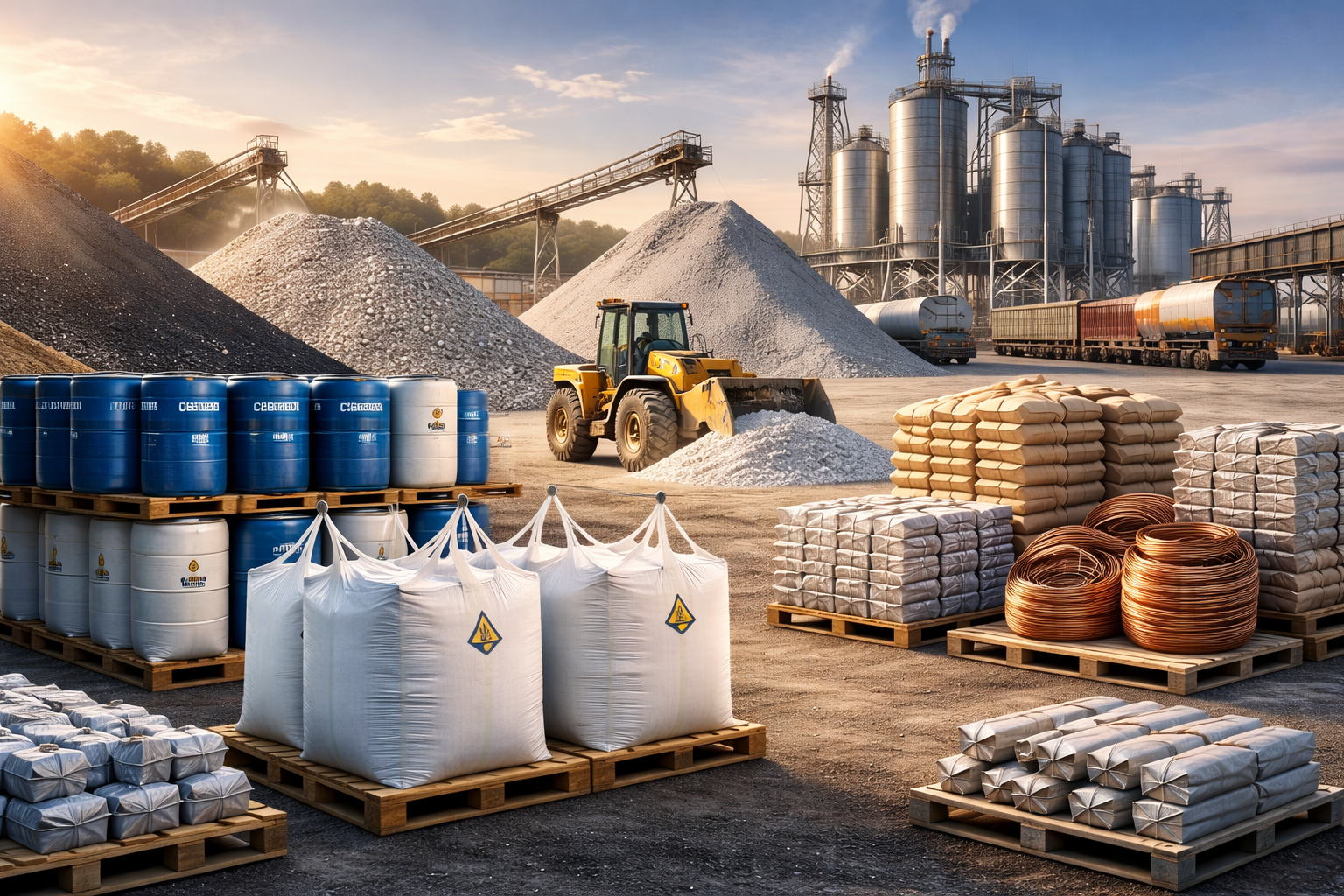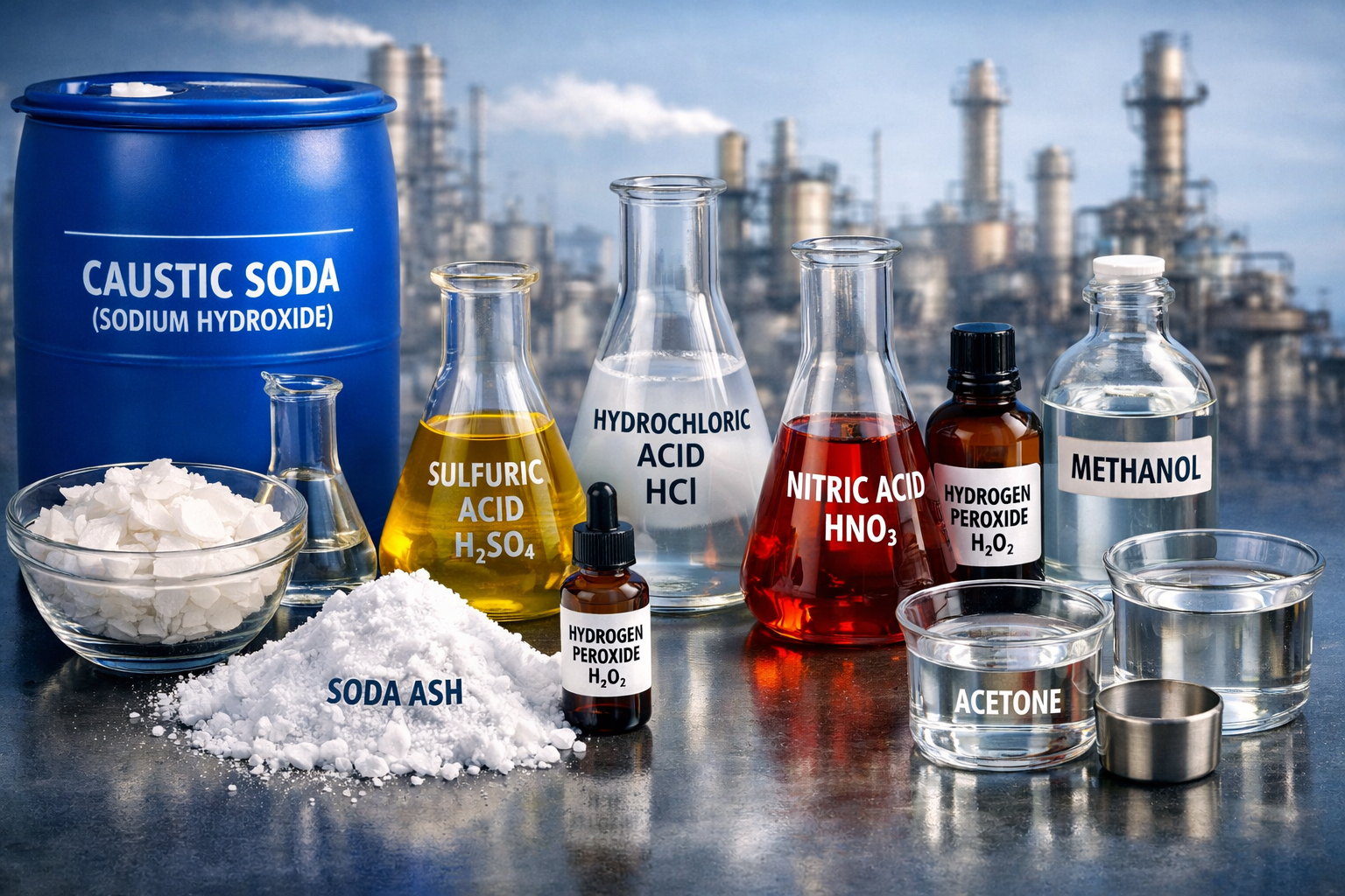 Bulk industrial chemicals for heavy production cycles.